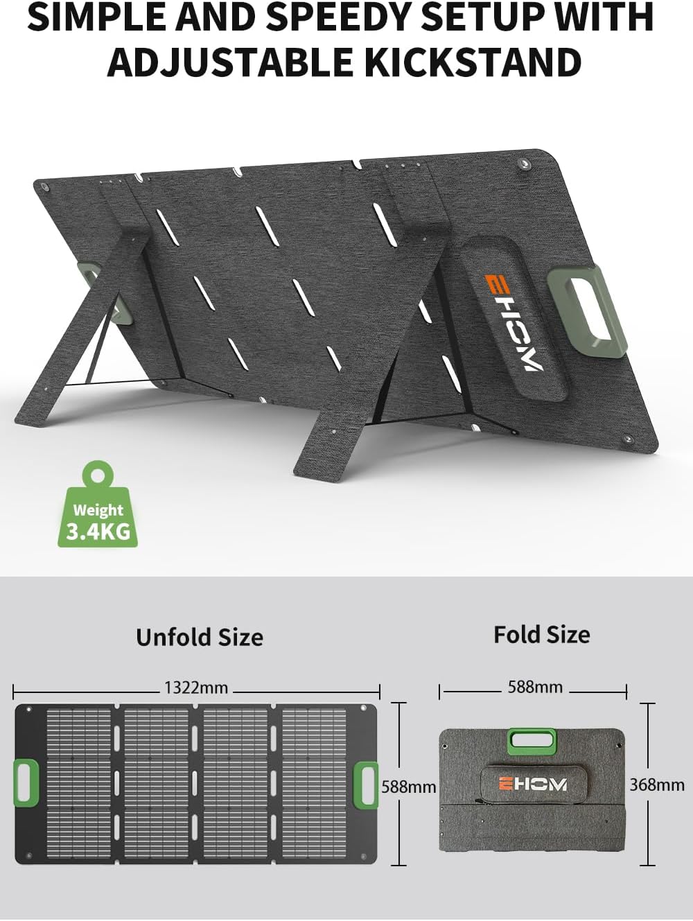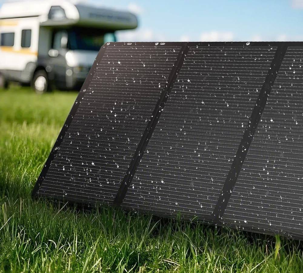 Panel można szybko złożyć do kompaktowego rozmiaru (np. po złożeniu ok. 59 × 37 × 8 cm), dzięki czemu łatwo go zabrać ze sobą w podróż, schować do bagażnika lub przechować w domu.