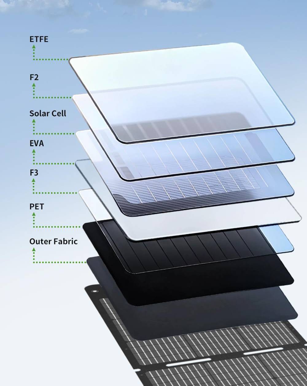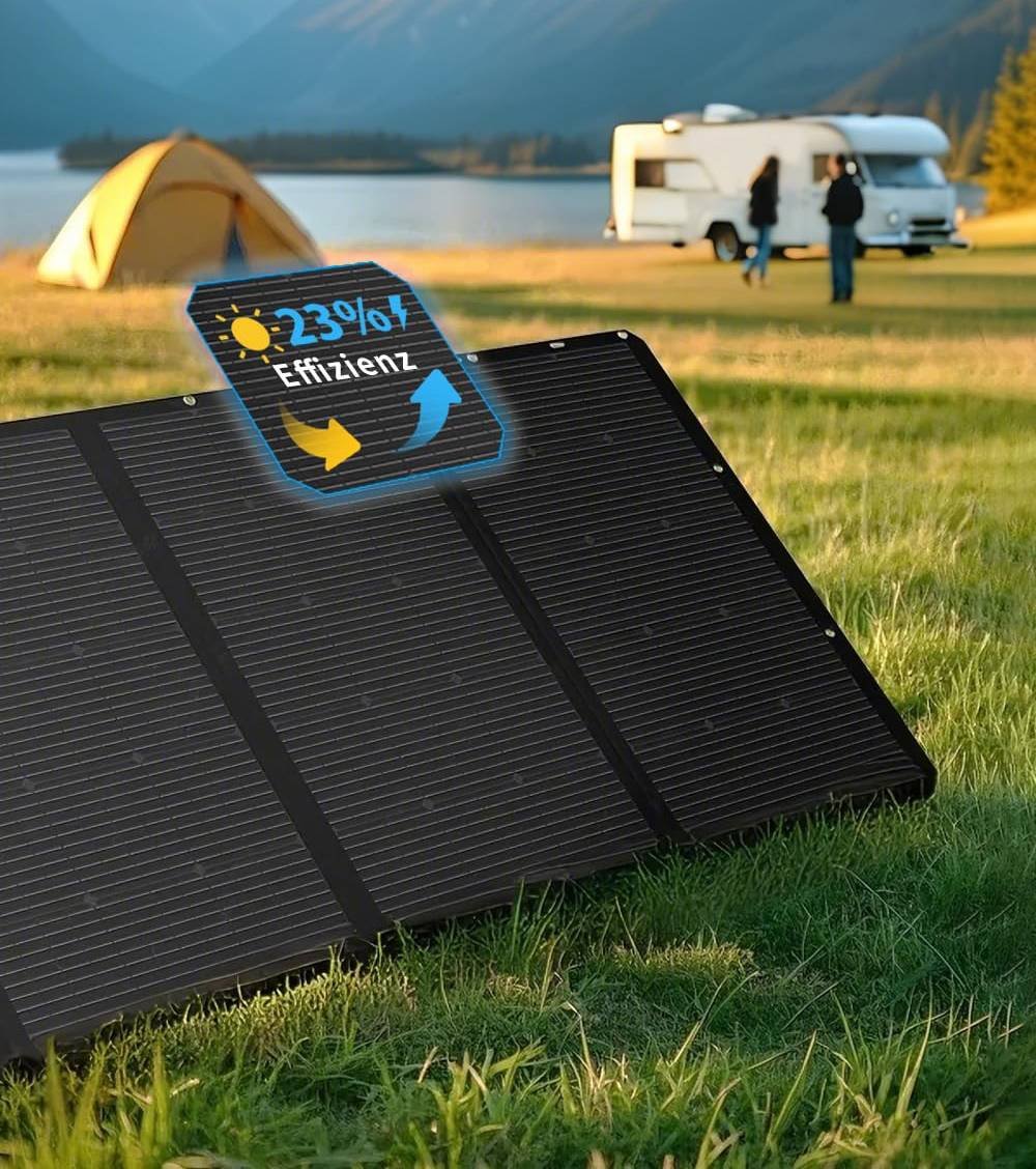 Panele są wodoodporne i odporne na kurz (klasa IP67), więc świetnie sprawdzają się na zewnątrz — na kempingu, pod namiotem, w ogrodzie czy nad jeziorem. Nie musisz martwić się o deszcz czy wilgoć.